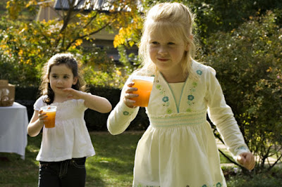 The have a storyteller there for the kids (under this GORGEOUS old oak tree) and Julieanne was all excited as she got to go up and help him make a picture of a monster (she called the purple faced monster... very original ;) )